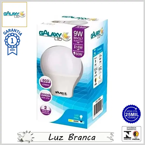 Lâmpada Led E27 BulboA LineLed 9.0Wx6500K (Luz Branca) - Bivolt (A60) - 803 lumens - Galaxy