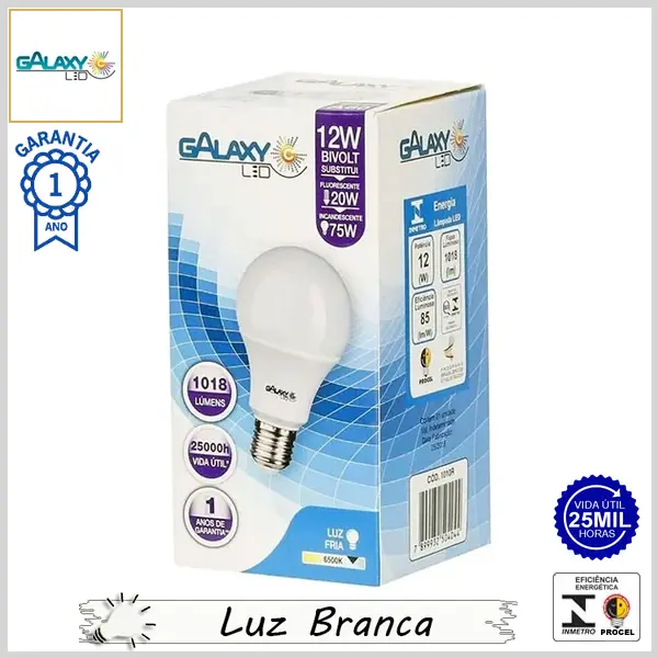 Lâmpada Led E27 BulboA LineLed 12Wx6500K (Luz Branca) - Bivolt (A60) - 1018 lumens - Galaxy