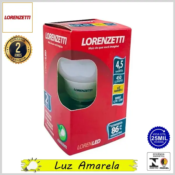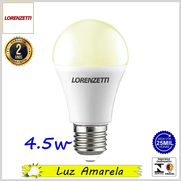 Lâmpada Led E27 BulboA LorenLed 4.5Wx3000K (Luz Amarela) - Bivolt (A60) - 450 lumens - Lorenzetti