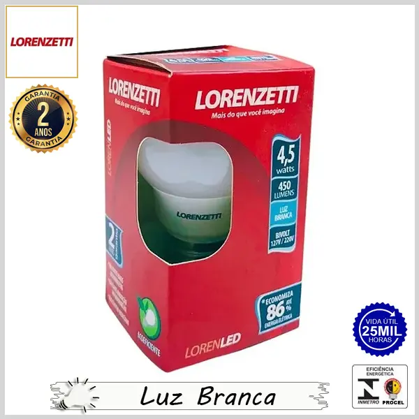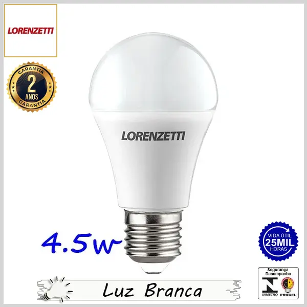 Lâmpada Led E27 BulboA LorenLed 4.5Wx6500K (Luz Branca) - Bivolt (A60) - 450 lumens - Lorenzetti