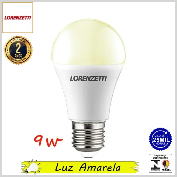 Lâmpada Led E27 BulboA LorenLed 9.0Wx3000K (Luz Amarela) - Bivolt (A60) - 803 lumens - Lorenzetti