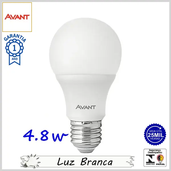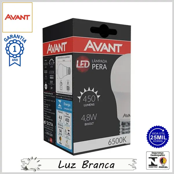 Lâmpada Led E27 BulboA PeraLed 4.8Wx6500K (Luz Branca) - Bivolt (A55) - 450 lumens - Avant
