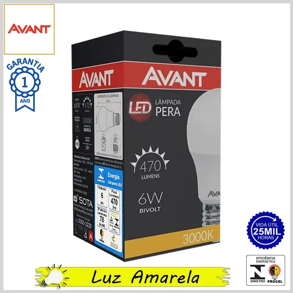 Lâmpada Led E27 BulboA PeraLed 6.0Wx3000K (Luz Amarela) - Bivolt (A60) - 470 lumens - Avant