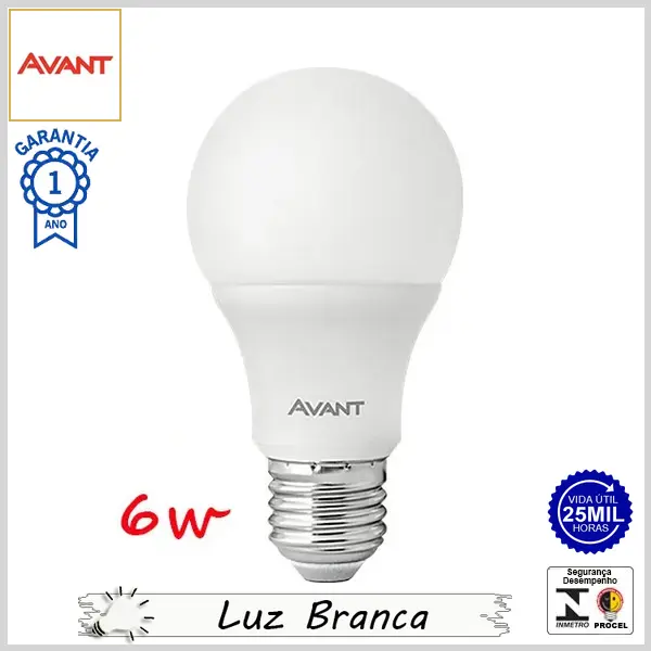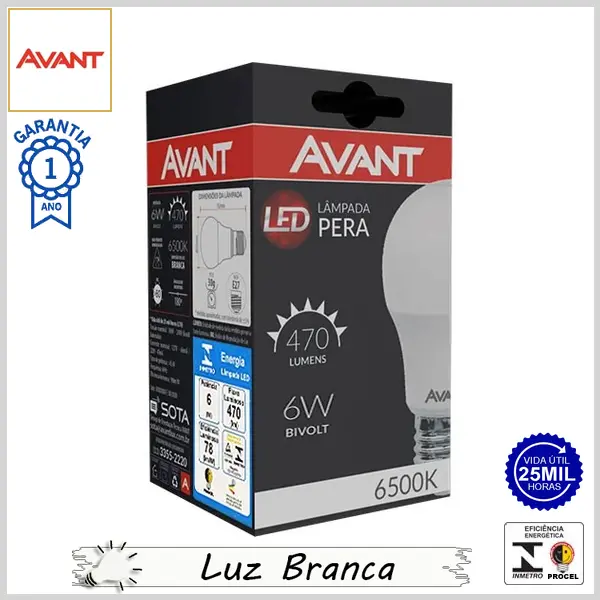 Lâmpada Led E27 BulboA PeraLed 6.0Wx6500K (Luz Branca) - Bivolt (A60) - 470 lumens - Avant