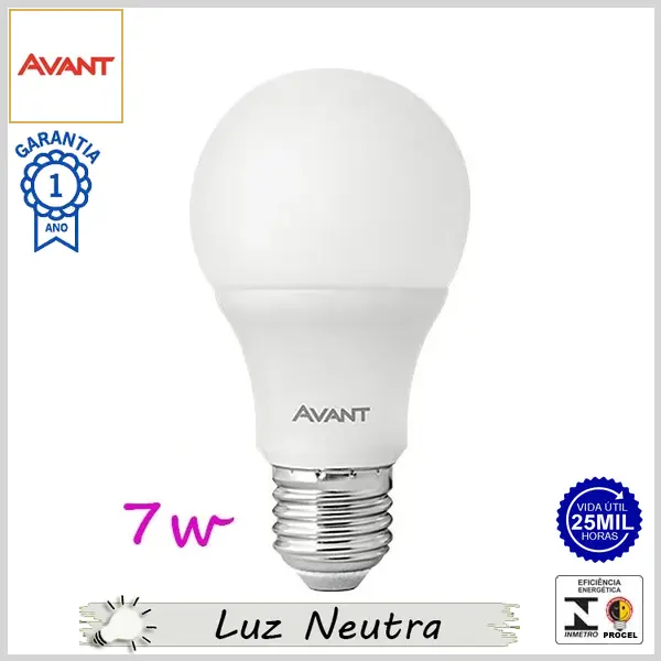 Lâmpada Led E27 BulboA PeraLed 7.0Wx4000K (Luz Neutra) - Bivolt (A60) - 560 lumens - Avant
