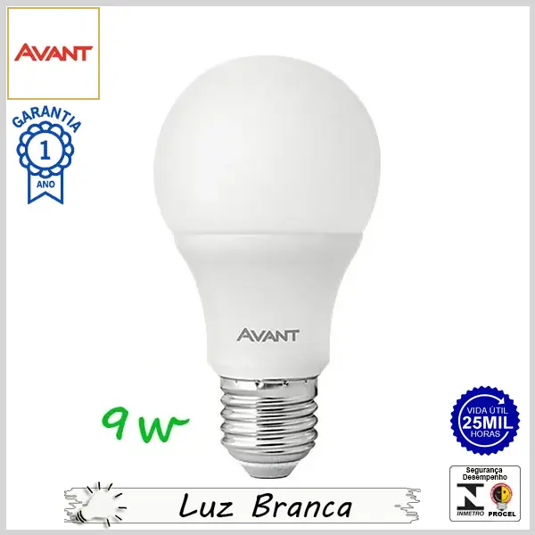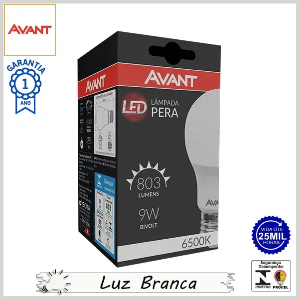 Lâmpada Led E27 BulboA PeraLed 9.0Wx6500K (Luz Branca) - Bivolt (A60) - 803 lumens - Avant
