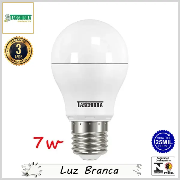 Lâmpada Led E27 BulboA PrimeLed 7.0Wx6500K (Luz Branca) - Bivolt (A60) - 560 lumens - Taschibra