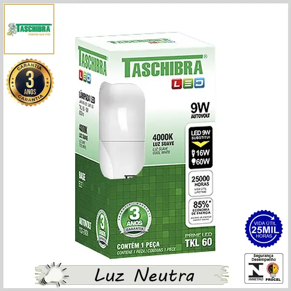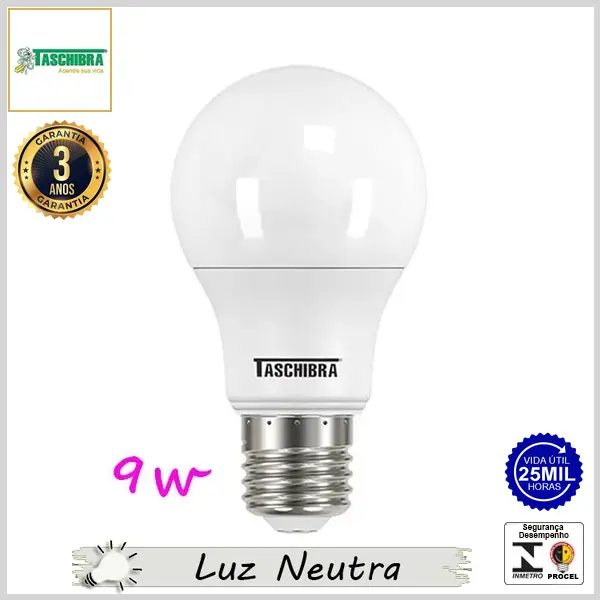 Lâmpada Led E27 BulboA PrimeLed 9.0Wx4000K (Luz Neutra) - Bivolt (A60) - 803 lumens - Taschibra