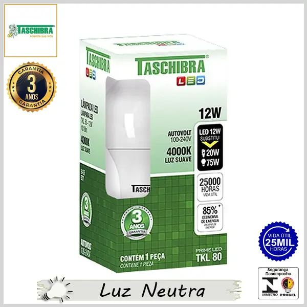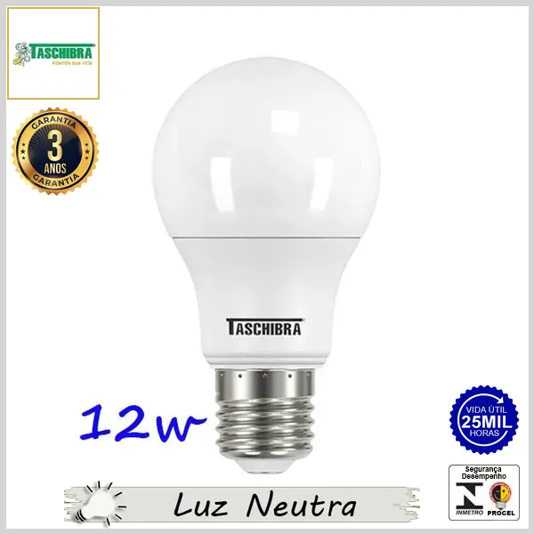 Lâmpada Led E27 BulboA PrimeLed 12Wx4000K (Luz Neutra) - Bivolt (A60) - 1018 lumens - Taschibra
