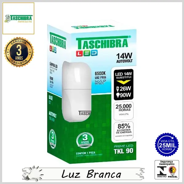 Lâmpada Led E27 BulboA PrimeLed 14Wx6500K (Luz Branca) - Bivolt (A65) - 1311 lumens - Taschibra