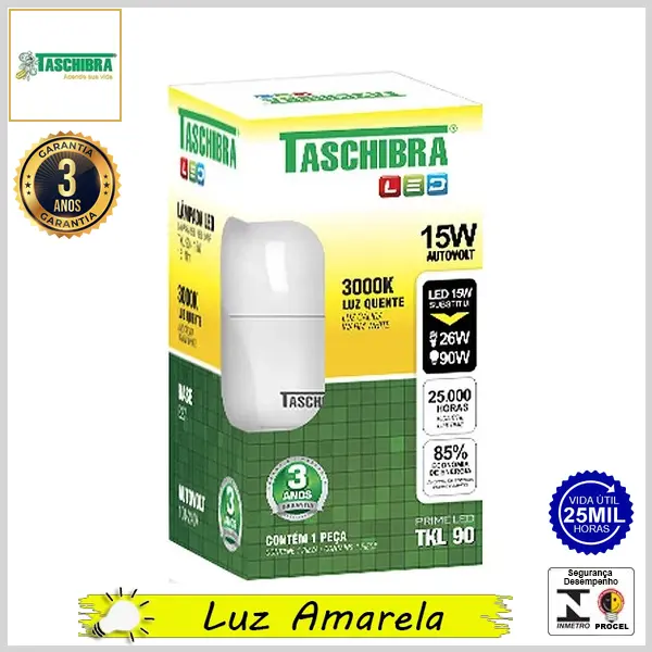 Lâmpada Led E27 BulboA PrimeLed 15Wx3000K (Luz Amarela) - Bivolt (A65) - 1311 lumens - Taschibra