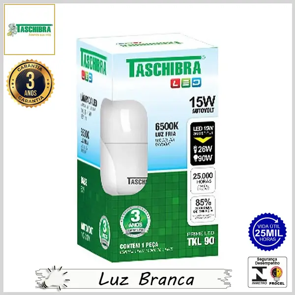 Lâmpada Led E27 BulboA PrimeLed 15Wx6500K (Luz Branca) - Bivolt (A65) - 1311 lumens - Taschibra