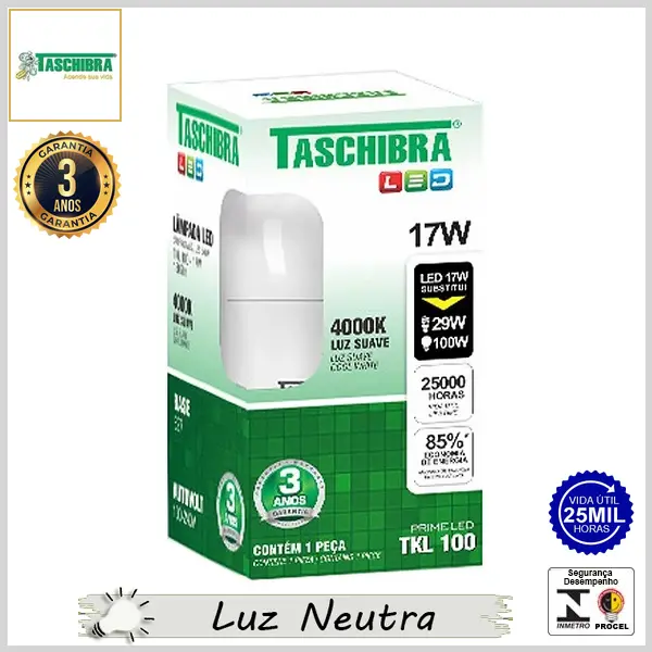 Lâmpada Led E27 BulboA PrimeLed 17Wx4000K (Luz Neutra) - Bivolt (A65) - 1507 lumens - Taschibra
