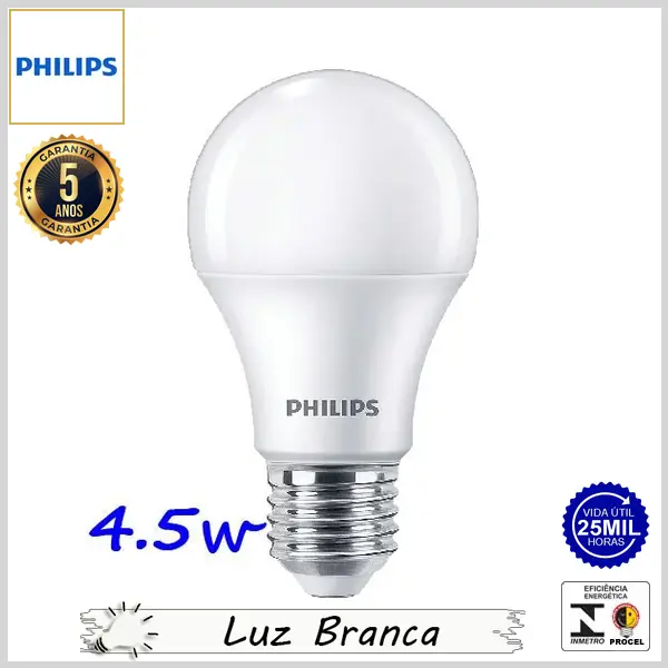 Lâmpada Led E27 BulboA StandardLed 4.5Wx6500K (Luz Branca) - Bivolt (A60) - 480 lumens - Philips