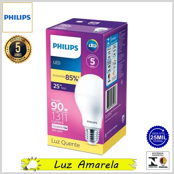 Lâmpada Led E27 BulboA StandardLed 13Wx3000K (Luz Amarela) - Bivolt (A60) - 1311 lumens - Philips
