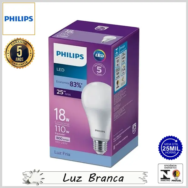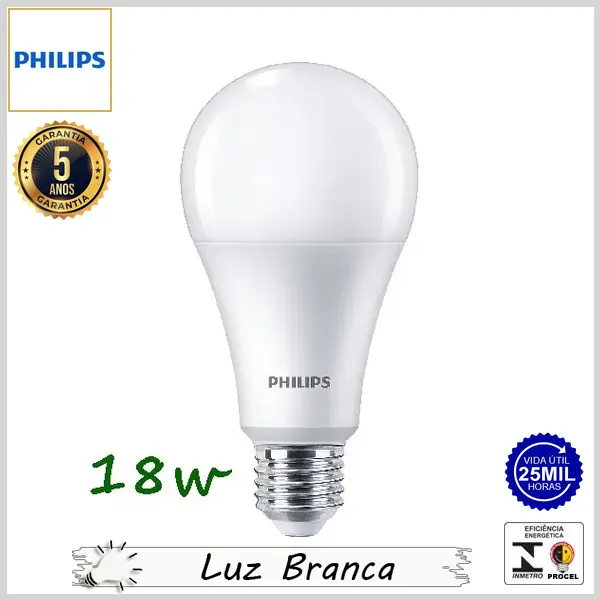 Lâmpada Led E27 BulboA StandardLed 18Wx6500K (Luz Branca) - Bivolt (A70) - 1800 lumens - Philips