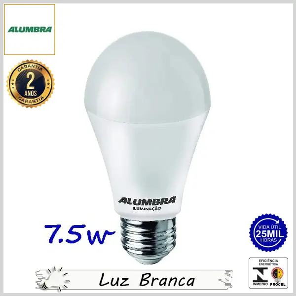 Lâmpada Led E27 BulboA SuperLed 7.5Wx6500K (Luz Branca) - Bivolt (A60) - 600 lumens - Alumbra