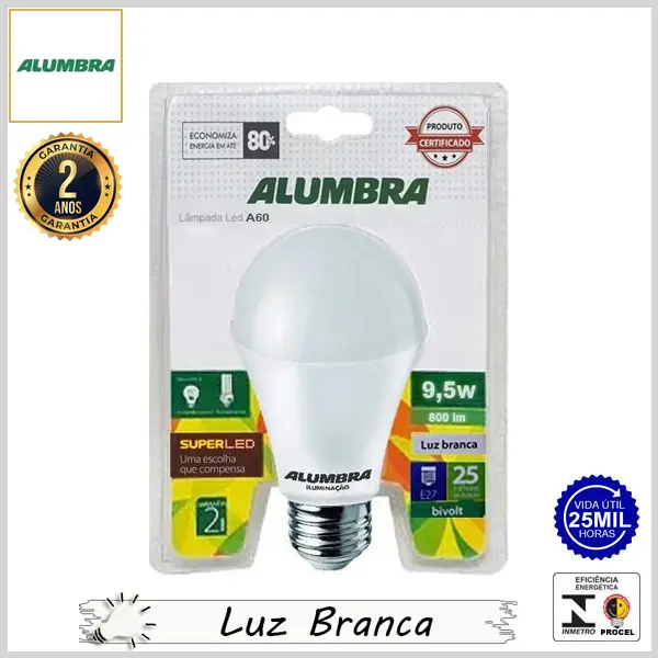 Lâmpada Led E27 BulboA SuperLed 9.5Wx6500K (Luz Branca) - Bivolt (A60) - 800 lumens - Alumbra