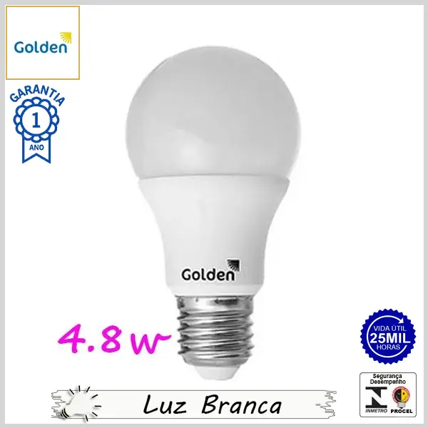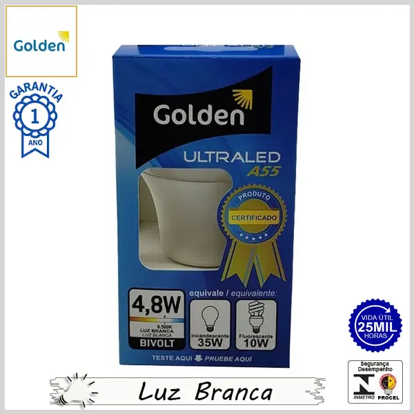 Lâmpada Led E27 BulboA UltraLed 4.8Wx6500K (Luz Branca) - Bivolt (A55) - 450 lumens - Golden