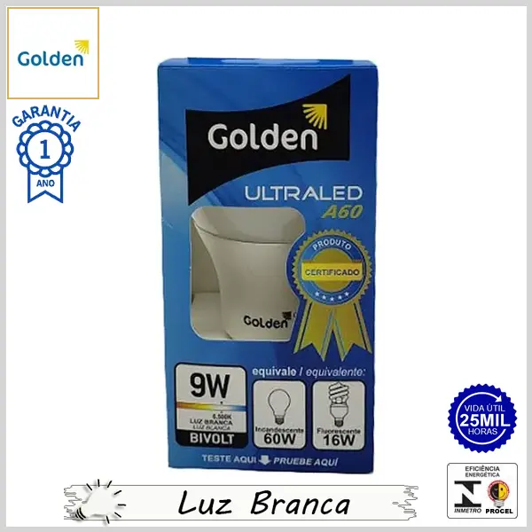 Lâmpada Led E27 BulboA UltraLed 9.0Wx6500K (Luz Branca) - Bivolt (A60) - 810 lumens - Golden