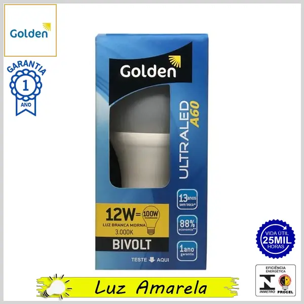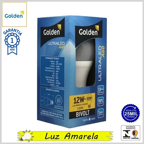 Lâmpada Led E27 BulboA UltraLed 12Wx3000K (Luz Amarela) - Bivolt (A60) - 1040 lumens - Golden