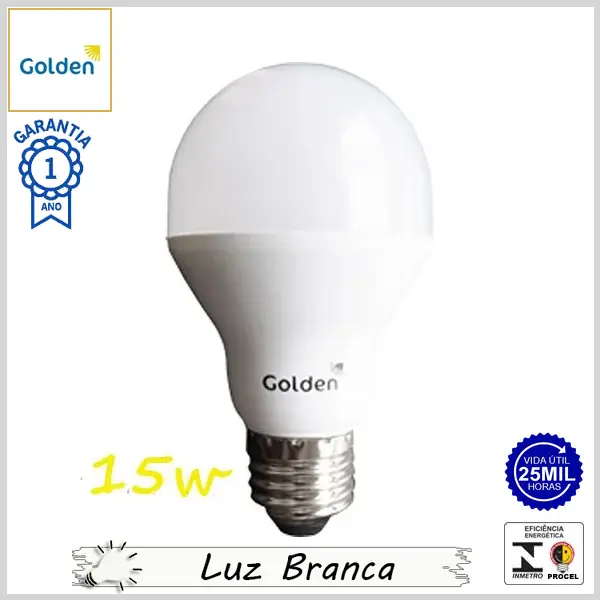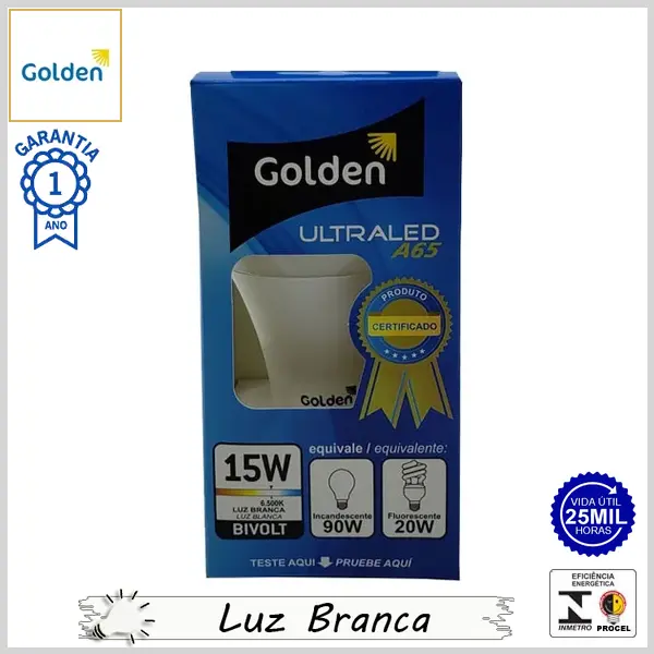 Lâmpada Led E27 BulboA UltraLed 15Wx6500K (Luz Branca) - Bivolt (A65) - 1350 lumens - Golden