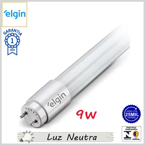 Lâmpada Led G13 Tubular T8 9Wx4000K (Luz Neutra) - Bivolt (T8) - 900 lumens - Elgin