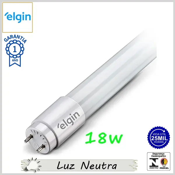 Lâmpada Led G13 Tubular T8 18Wx4000K (Luz Neutra) - Bivolt (T8) - 1850 lumens - Elgin