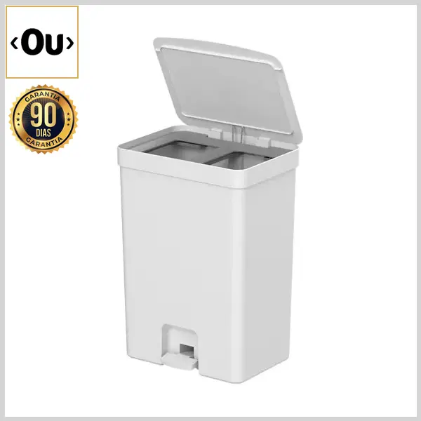 Lixeira Duplo Compartimento c/Pedal +Tampa Articulável Trium Plástico Polipropileno, 30 litros - Branco - Ou