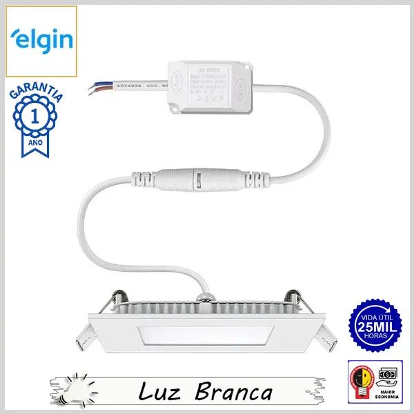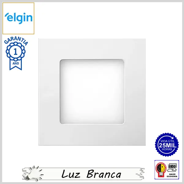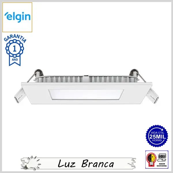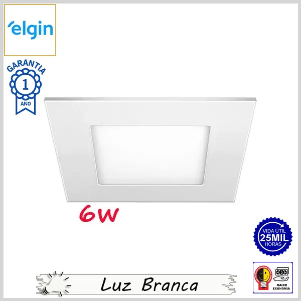 Luminária Led de Embutir Bivolt Quadrada 6500K c/Driver (Luz Branca) - Branco - 6W x 480 lumens - Elgin