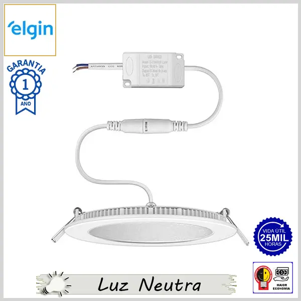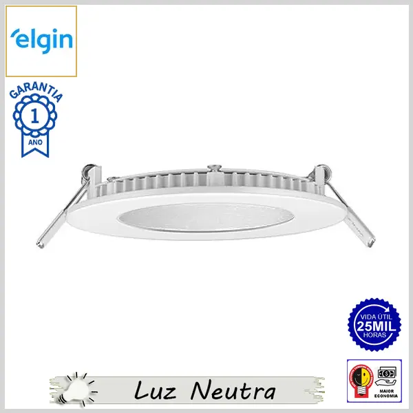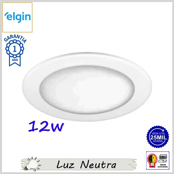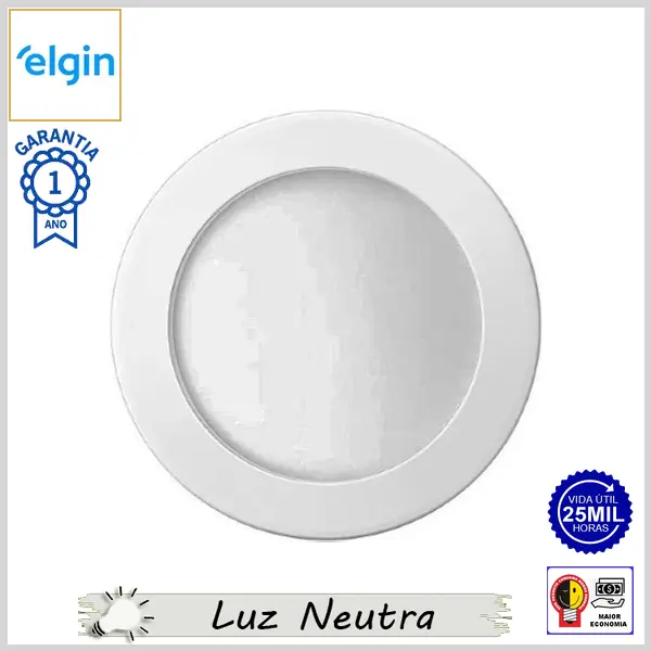 Luminária Led de Embutir Bivolt Redonda 4000K c/Driver (Luz Neutra) - Branco - 12W x 960 lumens - Elgin