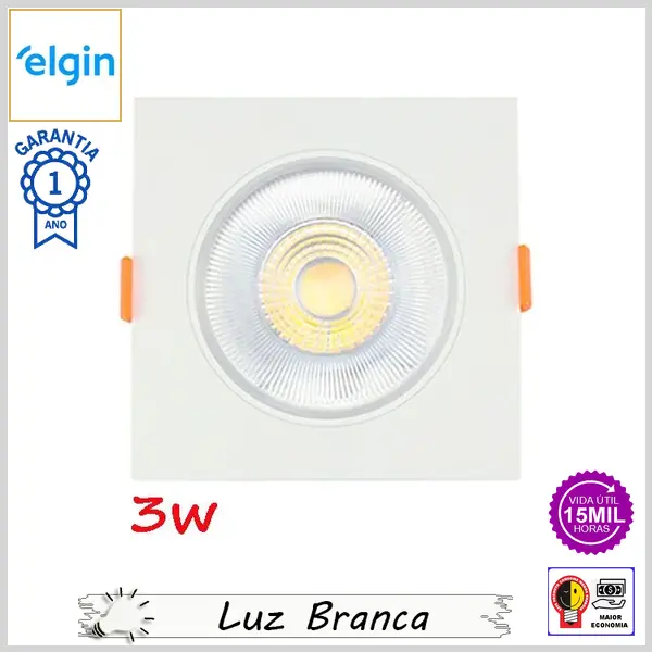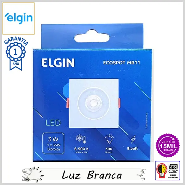 Luminária Led de Embutir MR11 EcoSpot Bivolt Direcionável Quadrada 6500K (Luz Branca) - Branco - 3W x 210 lumens - Elgin