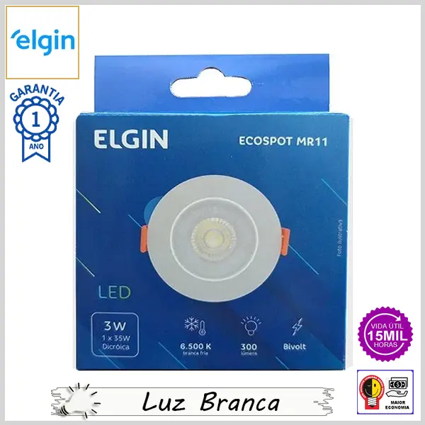 Luminária Led de Embutir MR11 EcoSpot Bivolt Direcionável Redonda 6500K (Luz Branca) - Branco - 3W x 210 lumens - Elgin