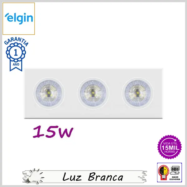 Luminária Led de Embutir MR16 EcoSpot Bivolt Direcionável Retangular Tripla 6500K (Luz Branca) - Branco - 15W x 1050 lumens - Elgin
