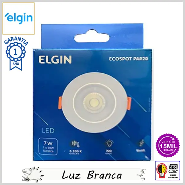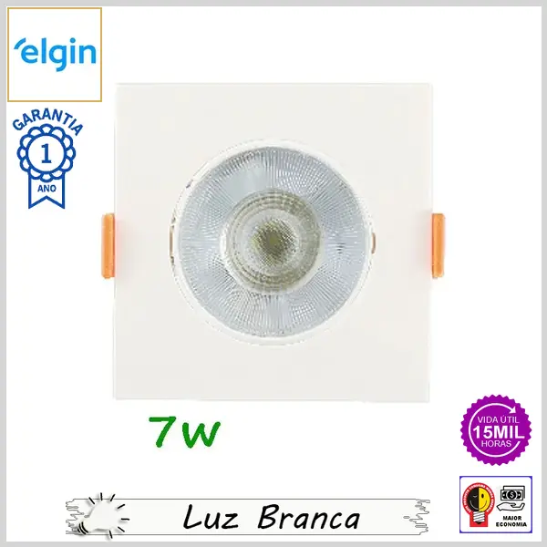 Luminária Led de Embutir PAR20 EcoSpot Bivolt Direcionável Quadrada 6500K (Luz Branca) - Branco - 7W x 525 lumens - Elgin