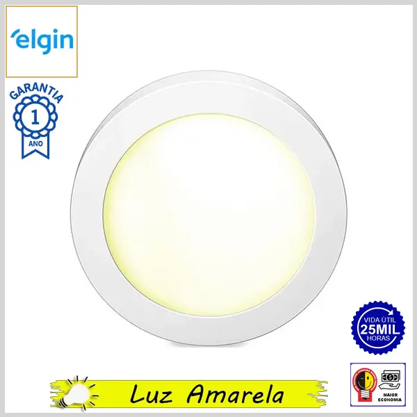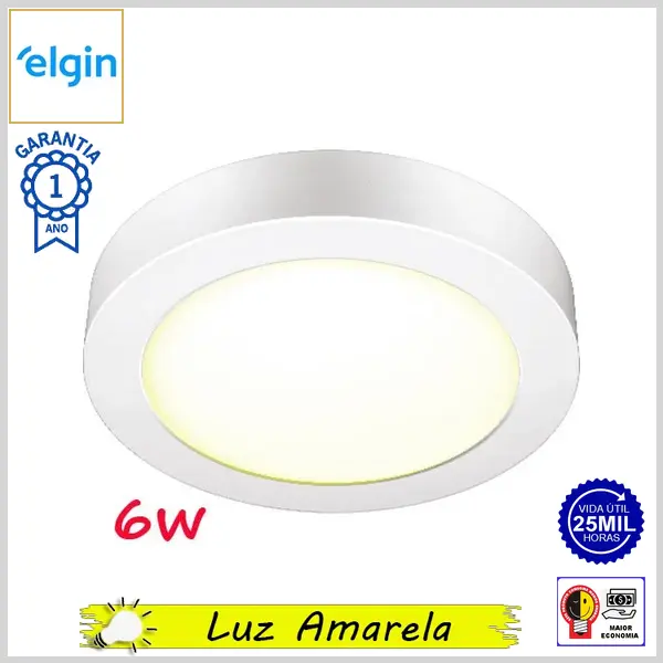 Luminária Led de Sobrepor Bivolt Redonda 3000K c/Driver (Luz Amarela) - Branco - 6W x 480 lumens - Elgin