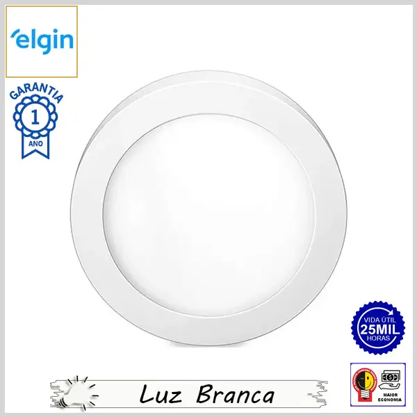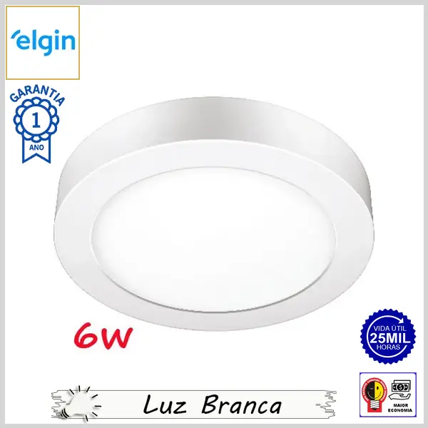 Luminária Led de Sobrepor Bivolt Redonda 6500K c/Driver (Luz Branca) - Branco - 6W x 480 lumens - Elgin