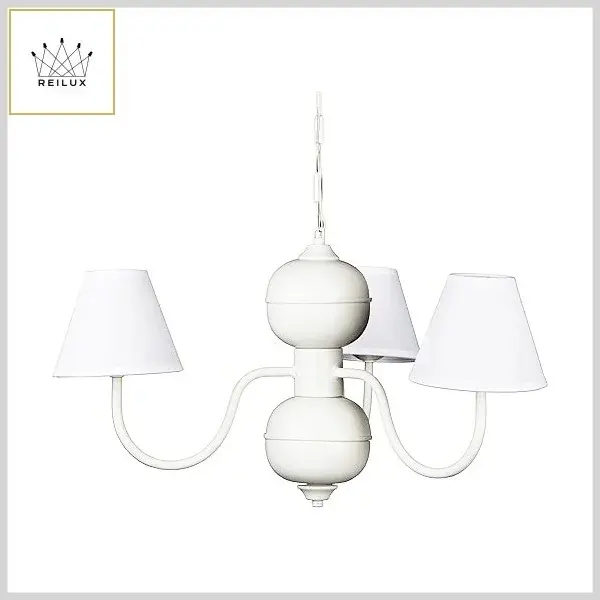 Lustre de Alumínio 050 3Braços 3xE27 Cúpula Tecido Branco - Branco Brilhante - Reilux