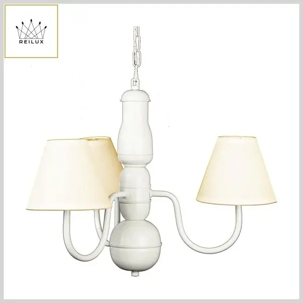 Lustre de Alumínio 213 3Braços 3xE27 Cúpula Tecido Bege - Branco Brilhante - Reilux