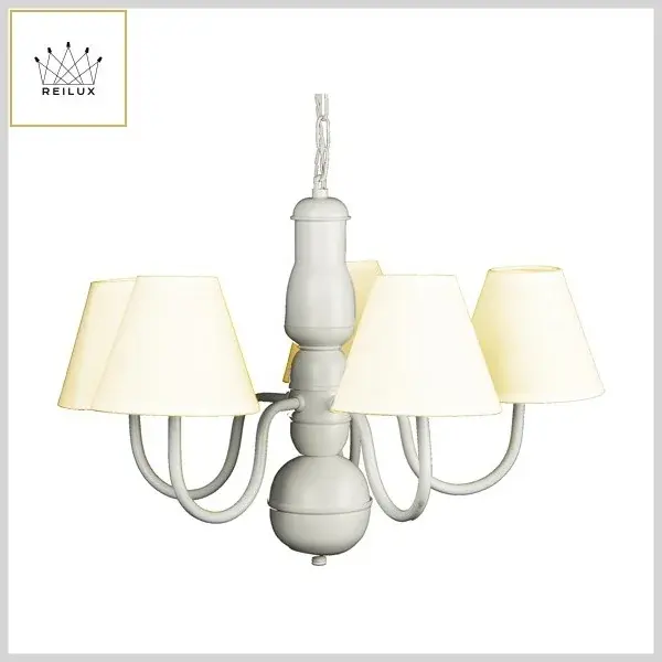 Lustre de Alumínio 214 5Braços 5xE27 Cúpula Tecido Bege - Branco Brilhante - Reilux