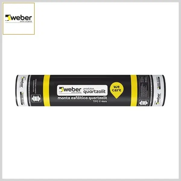 Manta asfáltica tipo II 4mm Quartzolit é um produto impermeabilizante, produzido a partir da modificação física do asfalto com uma mescla de polímeros especiais que proporciona à manta excelente poder de aderência, durabilidade e resistência. É indicada para impermeabilização de lajes e coberturas de pequenas dimensões em áreas frias, tais como banheiros, lavabos, cozinhas e áreas de serviço, sob telhados, pisos de barriletes, barreiras de vapor, baldrames, vigas, calhas e nos sistemas de dupla manta.