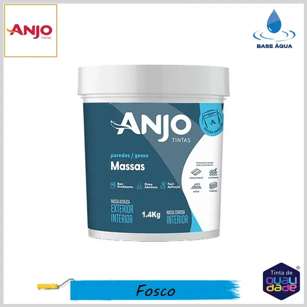 Anjo Massa Acrílica é produto de cor branca a base de água, que possui grande poder de enchimento, ótima aderência, fácil aplicação e facilidade de lixamento. É indicada para nivelar e corrigir imperfeições rasas em superfícies internas e externas de reboco, concreto aparente, gesso, fibrocimento e paredes já pintadas com látex, proporcionando um acabamento liso e fosco. Não utilizar o produto sobre superfícies mofadas ou com presença de umidade.