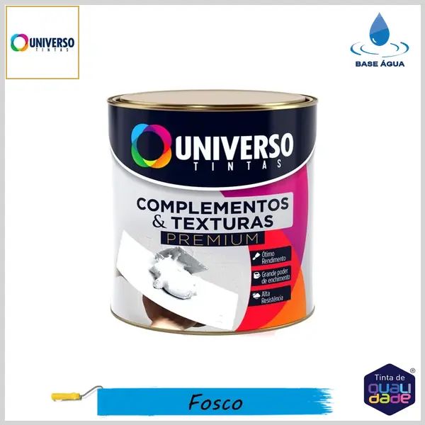Massa Acrílica Universo é produto de cor branca a base de água e acabamento fosco, que possui grande poder de enchimento, ótima aderência e facilidade de aplicação. Sendo muito resistente ás intempéries, é indicada para nivelar e corrigir imperfeições rasas em superfícies internas e externas de reboco, concreto e blocos aparentes. Não utilizar o produto sobre superfícies mofadas ou com presença de umidade.