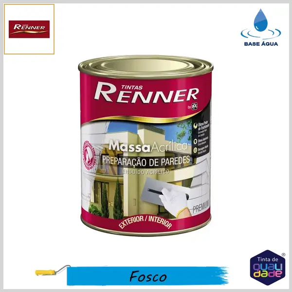 Massa Acrílica Premium da Renner é um produto de cor branca a base de água, de fácil aplicação e que possui ótima aderência. Apresenta aspecto cremoso que permite um ótimo poder de enchimento, com acabamento liso, fosco e sofisticado. É indicada para nivelar, uniformizar e corrigir pequenas imperfeições em superfícies internas e externas de reboco ou concreto. Não utilizar o produto sobre superfícies mofadas ou com umidade.
