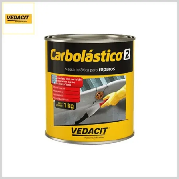 Massa Asfáltica Carbolástico② p/Reparos, 1kg - Lata Metálica - Vedacit