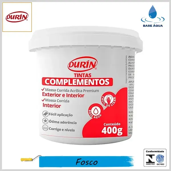 Massa Corrida PVA Interiores, Branco Fosco - 400 gramas - Durin