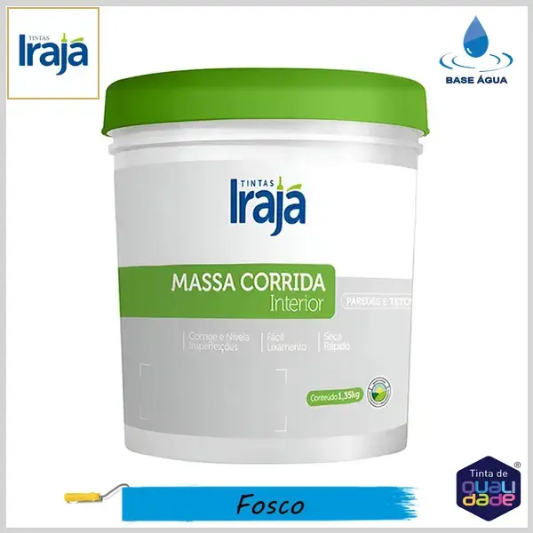 Massa Corrida PVA Interiores, Branco Fosco - 1.35 kg - Irajá