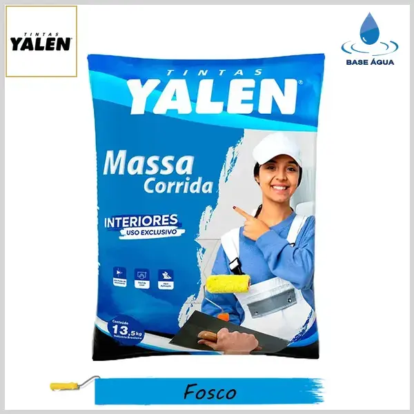 Massa Corrida PVA Interiores, Branco Fosco - 13.5 kg - Yalen