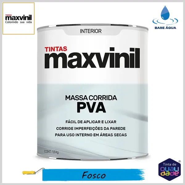 Massa Corrida PVA Interiores, Branco Fosco - 1.5 kg - Maxvinil