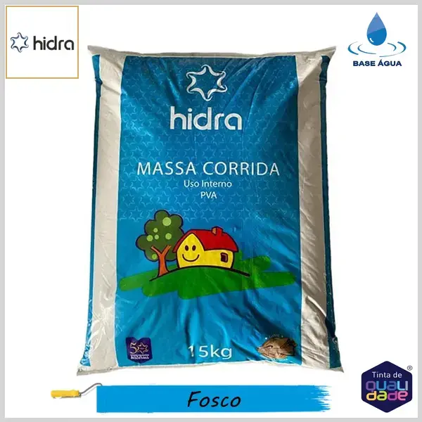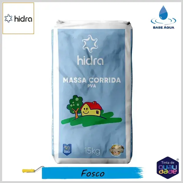 Massa Corrida PVA Interiores, Branco Fosco - 15.0 kg - Hidra